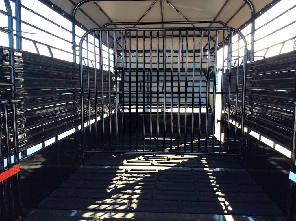 2026 Gooseneck Trailer Mfg. Co., Inc. 16 inch Steel Trailer with Canvas Top, 16 x 6 8, Bow Height 6 6, Cleated Rubber Floor, Electric Brakes.
