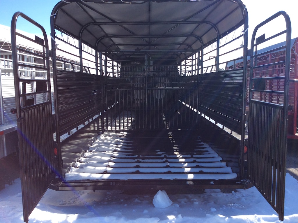 2026 Gooseneck Trailer Mfg. Co., Inc. 24 inch Steel Trailer with Canvas Top, 24 x 6 8, Bow Height 6 6, Cleated Rubber Floor, Electric Brakes.
