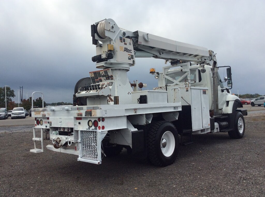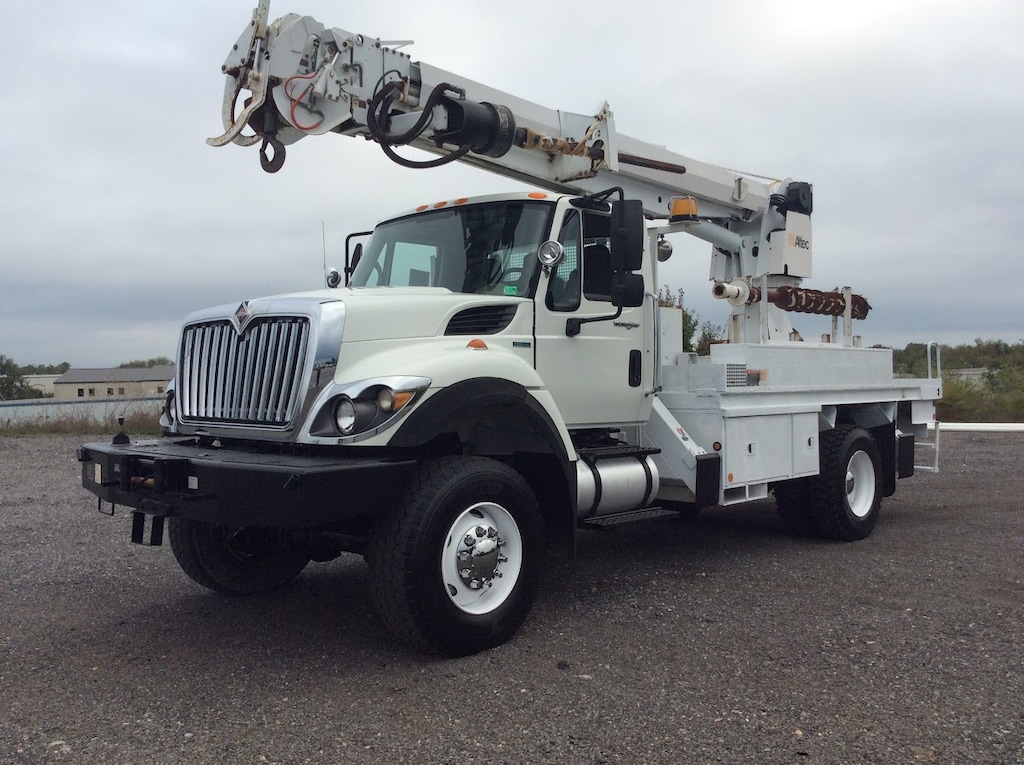 2010 International MAX FORCE DT WORKSTAR, standard cab, Altec Digger Derrick, Eaton Syncro-6, new tires