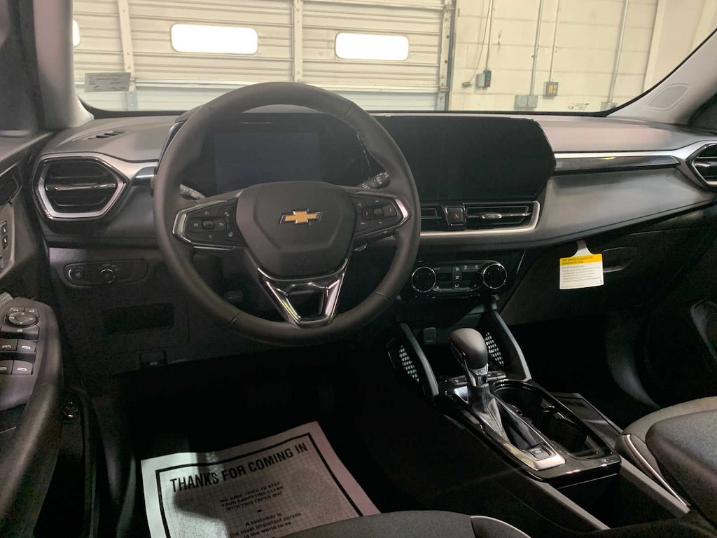 includes (C68) automatic climate control air conditioning, (USS) one type-A and one type-C charging only USB ports, (K4C) Wireless Charging, (KI6) 120-volt power outlet, (DD8) inside rearview auto-dimming mirror and (DMS) driver and front passenger illuminated vanity mirrors, covered, sliding visors (Also includes (A2X) driver 8-way power seat adjuster, (AL9) driver 2-way power lumbar, (DA5) rear center armrest and (TB5) power liftgate. includes (KA1) heated driver and front passenger seats, (UVD) heated steering wheel, (N5F) wrapped steering wheel and (VY7) wrapped shift knob, WHEELS, 18" (45.7 CM) HIGH GLOSS BLACK MACHINED ALUMINUM, includes (UKC) Lane Change Alert with Side Blind Zone Alert, (UFG) Rear Cross Traffic Alert and (UD7) Rear Park Assist, LPO, ALL-WEATHER FLOOR LINERS, FRONT AND REAR, Additional features for compatible phones include: Bluetooth® audio streaming for 2 active devices, voice command pass-through to phone, wireless Apple CarPlay® and wireless Android Auto® capable (STD), (155 hp [115 kW] @ 5600 rpm, 174 lb-ft torque [236 N-m] @ 1600 rpm) (STD), (STD). Chevrolet LT with Mosaic Black Metallic exterior and Jet Black interior features a 3 Cylinder Engine with 155 HP at 5600 RPM*.
