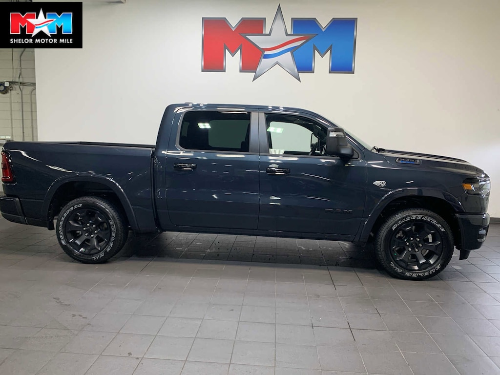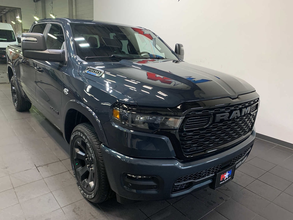 Active Noise Control System, Heavy Duty Engine Cooling, Passive Tuned Mass Damper, GVWR: 7,100 lbs, Dual Rear Exhaust w/Bright Tips, G/T Exhaust, 18 Aluminum Spare Wheel, SiriusXM Radio Service, Power Adjustable Pedals, Leather Wrapped Steering Wheel, 12 Touchscreen Display, Glove Box Lamp, Auto Power-Folding Mirrors, 115V Auxiliary Rear Power Outlet, Media Hub w/2 Charge Only USBs, Heated Front Seats, Security Alarm, Black Premium Power Mirrors, Premium Overhead Console, 9 Amplified Speakers w/Subwoofer, Disassociated Touchscreen Display, Body Color Fender Flares, Remote Tailgate Release, 115V Auxiliary Power Outlet, LED Dome Lamp w/On/Off Switch, Universal Garage Door Opener, 2nd Row In Floor Storage Bins, Sun Visors w/Illuminated Vanity Mirrors, LED Footwell Lighting, Rear Window Defroster, Rear View Auto Dim Mirror, Rear Power Sliding Window, GPS Navigation, Overhead LED Lamps, Wheels: 20 x 9 Aluminum Chrome Clad (WRK), Tires: 275/55R20 OWL All, Tires: 275/55R20 OWL All Season, Bridgestone Brand Tires, Accent Color Premium Power Mirrors, Exterior Mirrors w/Supplemental Signals, Black Headlamp Bezels, Exterior Mirrors Courtesy Lamps, Grille Black Surround Black Mesh, Auto Power-Folding Mirrors, Wheels: 20 x 9.0 Aluminum Painted Clad, Auto Dim Exterior Driver Mirror, Black Exterior Truck Badging, Anti-Spin Differential Rear Axle, Accent Color Door Handles, Accent Color Tailgate Handle, Black Interior Accents, Dual Exhaust w/Black Tips, Body Color Front Bumper, Body Color Rear Bumper w/Step Pads, Black Tail Lamp Bezels, RAM Grille Badge - Black, Black Painted Exterior Mirrors Caps, MOPAR FRONT & REAR RUBBER FLOOR MATS, TRANSMISSION: 8-SPEED AUTOMATIC (8HP75). Ram Big Horn with Forged Blue Metallic exterior and Black interior features a 8 Cylinder Engine with 395 HP at 5600 RPM*.