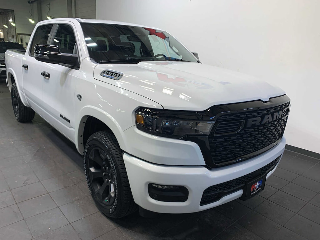 Active Noise Control System, Heavy Duty Engine Cooling, Passive Tuned Mass Damper, GVWR: 7,100 lbs, Dual Rear Exhaust w/Bright Tips, G/T Exhaust, 18 Aluminum Spare Wheel, SiriusXM Radio Service, Power Adjustable Pedals, Leather Wrapped Steering Wheel, 12 Touchscreen Display, Glove Box Lamp, Auto Power-Folding Mirrors, 115V Auxiliary Rear Power Outlet, Media Hub w/2 Charge Only USBs, Heated Front Seats, Security Alarm, Black Premium Power Mirrors, Premium Overhead Console, 9 Amplified Speakers w/Subwoofer, Disassociated Touchscreen Display, Body Color Fender Flares, Remote Tailgate Release, 115V Auxiliary Power Outlet, LED Dome Lamp w/On/Off Switch, Universal Garage Door Opener, 2nd Row In Floor Storage Bins, Sun Visors w/Illuminated Vanity Mirrors, LED Footwell Lighting, Rear Window Defroster, Rear View Auto Dim Mirror, Rear Power Sliding Window, GPS Navigation, Overhead LED Lamps, Wheels: 20 x 9 Aluminum Chrome Clad (WRK), Tires: 275/55R20 OWL All, Tires: 275/55R20 OWL All Season, Bridgestone Brand Tires, Accent Color Premium Power Mirrors, Exterior Mirrors w/Supplemental Signals, Black Headlamp Bezels, Exterior Mirrors Courtesy Lamps, Grille Black Surround Black Mesh, Auto Power-Folding Mirrors, Wheels: 20 x 9.0 Aluminum Painted Clad, Auto Dim Exterior Driver Mirror, Black Exterior Truck Badging, Anti-Spin Differential Rear Axle, Accent Color Door Handles, Accent Color Tailgate Handle, Black Interior Accents, Dual Exhaust w/Black Tips, Body Color Front Bumper, Body Color Rear Bumper w/Step Pads, Black Tail Lamp Bezels, RAM Grille Badge - Black, Black Painted Exterior Mirrors Caps, MOPAR Spray In Bedliner, MOPAR 4 Adjustable Cargo Tie-Down Hooks, Pick-Up Box Lighting, Exterior 115V AC Outlet, MOPAR FRONT & REAR RUBBER FLOOR MATS, TRANSMISSION: 8-SPEED AUTOMATIC (8HP75). Ram Big Horn with Bright White Clearcoat exterior and Black interior features a 8 Cylinder Engine with 395 HP at 5600 RPM*.