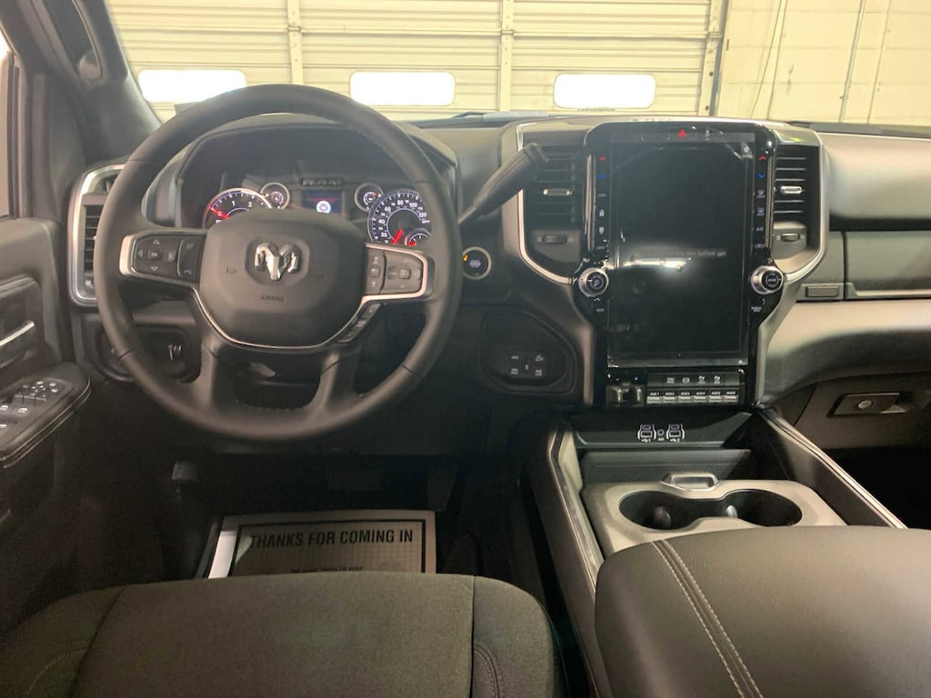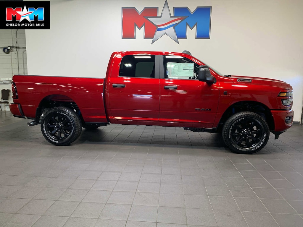 Selective Catalytic Reduction (Urea), Dual 730 Amp Maintenance Free Batteries, Cummins Turbo Diesel Badge, Heavy Duty Engine Cooling, Diesel Exhaust Brake, Supplemental Heater, 3.42 Axle Ratio, Front Bumper Sight Shields, Capless Fuel Fill w/o Discriminator, GVWR: 11,040 lbs, Emergency Vehicle Alert System (EVAS), 12 Touchscreen Display, Glove Box Lamp, Auto Power-Folding Mirrors, Footwell Courtesy Lamp, Anti-Spin Differential Rear Axle, MOPAR Deployable Bed Step, Alexa Built-In, Forward & Reverse Utility Lights, Locking Lower Glove Box, Remote Start System, 9 Alpine Speakers w/Subwoofer, Disassociated Touchscreen Display, Dual Glove Boxes, 2nd Row In Floor Storage Bins, Rear View Auto Dim Mirror, Rear Dome w/On/Off Switch Lamp, LED Bed Lighting, GPS Navigation, SiriusXM w/360L, Connected Travel & Traffic Services, Foam Bottle Insert (Door Trim Panel), Big Horn IP Badge, Off-Road Info Pages, Trailer Tow Pages, HD Radio, Radio: Uconnect 5 Nav w/12.0 Display, Power Heated Folding Telescopic Mirrors, Steering Wheel Mounted Audio Controls, Air Conditioning ATC, Gloss Black Nostrils/Mic Black Grille, Tires: LT285/60R20E OWL On/Off Road, Black Exterior Truck Badging, Wheels: 20 x 8.0 Black Painted Aluminum, Body Color Grille-Surround, Black Interior Accents, Black Wheel Center Hub, Painted Front Bumper, Painted Rear Bumper, Heated Steering Wheel, Heated Front Seats, Bucket Seats, Power Adjust 8-Way Driver Seat, Folding Flat Load Floor Storage, Rear 60/40 Folding Seat, Front Seat Back Map Pockets, Power 2-Way Driver Lumbar Adjust, Full Length Upgraded Floor Console, MOPAR FRONT & REAR RUBBER FLOOR MATS, TRANSMISSION: 8-SPEED TORQUEFLITE HD AUTOMATIC. Ram Big Horn with Molten Red Pearlcoat exterior and Black interior features a Straight 6 Cylinder Engine with 430 HP at 2800 RPM*.