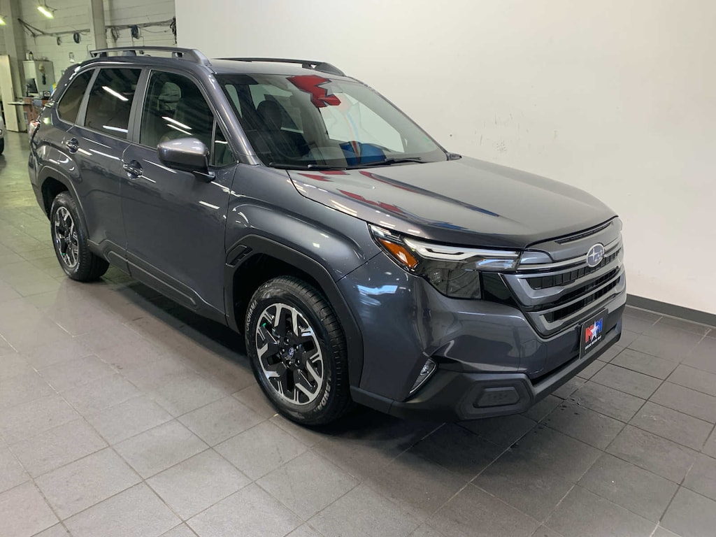Automatic Emergency Steering, Blind-Spot Detection (BSD)/RCTA System, BSD/RCTA detection indicator exterior power mirrors, rear radar detection sensors, lane change assist and audible vehicle detection warning rear cross-traffic alert, Power Rear Gate, automatic close and height memory, hands-free foot activation sensor, hand pressure sensing automatic close and illuminated close and lock switch, AUTO-DIMMING MIRROR W/COMPASS & HOMELINK. Subaru Premium with Magnetite Gray Metallic exterior and Gray interior features a 4 Cylinder Engine with 180 HP at 5800 RPM*.