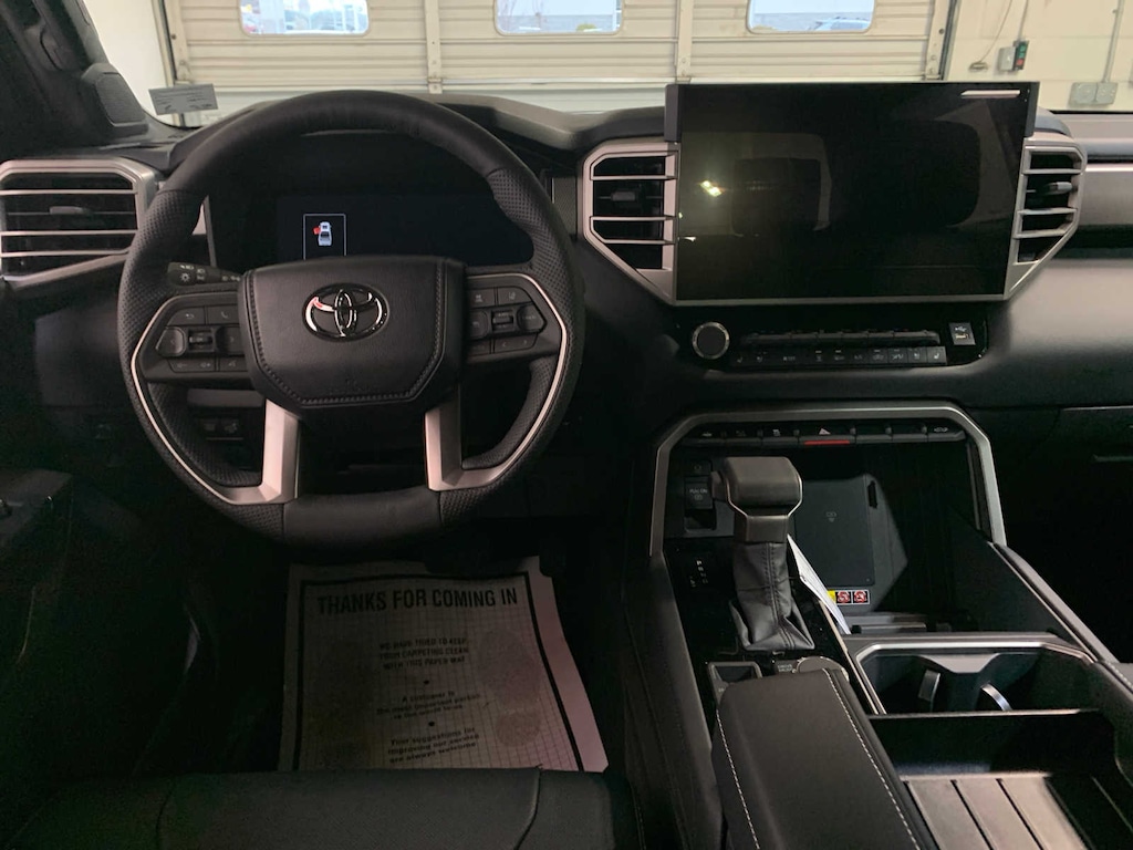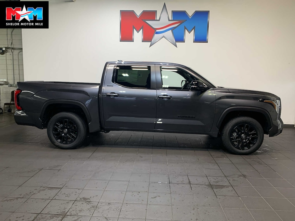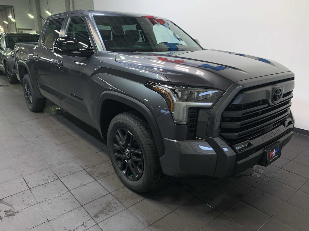 Panoramic View Back Monitor, NON-SKID SPRAY-ON BED LINER (TMS), 12 speakers, subwoofer and amplifier, black overfenders, black rear bumper, gloss black window molding, gloss black door handles, gloss black mirror caps, gloss black tailgate handle and black Tundra badge and 4x4 badge, Wheels: 20 x 8J Matte Black TRD Sport Style, Towing Package, High Grade Full LED Headlamp, ALL WEATHER FLOOR LINERS (TMS), HEATED LEATHER STEERING WHEEL. Toyota Limited with Magnetic Gray Metallic exterior and Black interior features a V6 Cylinder Engine with 389 HP at 5200 RPM*.
