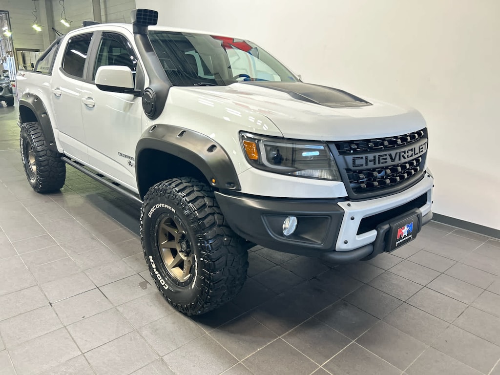 includes CHEVROLET Grille, AEV Front Bumper, (T3U) fog lamps, (VHU) AEV rear bumper, (B7O) Wheel Moldings, (CPX) Front floor liners, (CPY) Rear floor liners, AEV Embroidered Headrests, (PZ9) Fuel tank skid plate, (PZG) front skid plate, (PZL) rear differential skid plate, (PZN) transfer case skid plate, (RIG) 17 AEV aluminum wheel, and (S4M) 17 AEV spare wheel, AUDIO SYSTEM FEATURE, BOSE PREMIUM 7-SPEAKER SYSTEM, with connected Navigation, 8 diagonal HD color touchscreen, AM/FM stereo, Bluetooth® audio streaming for 2 active devices, Apple CarPlay® and Android Auto® capable, enhanced voice recognition, additional memory for in-vehicle apps, cloud connected personalization for select infotainment and vehicle settings. Subscription required for enhanced and connected services after trial period Includes (MCR) USB data ports and memory card.), (308 hp [230.0 kW] @ 6800 rpm, 275 lb-ft of torque [373 N-m] @ 4000 rpm) (STD), (STD). Chevrolet 4WD ZR2 with Summit White exterior and Jet Black interior features a V6 Cylinder Engine with 308 HP at 6800 RPM*. Serviced here, Originally bought here, Local Trade-In