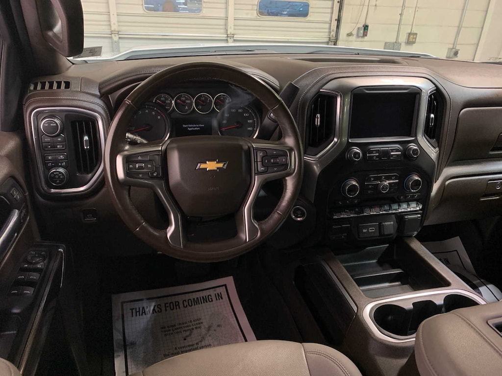 on Crew Cab models, (dealer-installed), with six functional load/access features, 8 diagonal HD color touchscreen, AM/FM stereo, Bluetooth® audio streaming for 2 active devices, wireless Apple CarPlay® and Android Auto® capable, voice recognition, in-vehicle apps, cloud connected personalization for select infotainment and vehicle settings. Subscription required for enhanced and connected services after trial period. (STD), (355 hp [265 kW] @ 5600 rpm, 383 lb-ft of torque [518 Nm] @ 4100 rpm); featuring available Dynamic Fuel Management that enables the engine to operate in 17 different patterns between 2 and 8 cylinders, depending on demand, to optimize power delivery and efficiency (STD) (NOTE: Certain 21MY vehicles will include (YK9) Not Equipped with Dynamic Fuel Management.), with overdrive and tow/haul mode. Includes Cruise Grade Braking and Powertrain Grade Braking (STD), includes (UD5) Front and Rear Park Assist, (UKC) Lane Change Alert with Side Blind Zone Alert and (UFG) Rear Cross Traffic Alert (Includes Perimeter Lighting.). Chevrolet LTZ with Summit White exterior and Gideon/Very Dark Atmosphere interior features a 8 Cylinder Engine with 355 HP at 5600 RPM*.