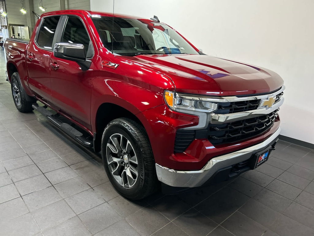 (355 hp [265 kW] @ 5600 rpm, 383 lb-ft of torque [518 Nm] @ 4100 rpm); featuring available Dynamic Fuel Management that enables the engine to operate in 17 different patterns between 2 and 8 cylinders, depending on demand, to optimize power delivery and efficiency (Certain vehicles may be forced to include (YK9) Not Equipped with Dynamic Fuel Management. See dealer for details.), includes (Z71) Off-Road suspension, (JHD) Hill Descent Control, (NZZ) skid plates and (K47) heavy-duty air filter Includes Z71 hard badge, (N10) dual exhaust, (RCV) 18 bright silver painted wheels, (XCK) 265/65R18 all-terrain, blackwall tires and (NQH) 2-speed transfer case. includes (UG1) Universal Home Remote, (A48) rear sliding power window, (PZ8) Hitch Guidance with Hitch View, (JL1) Trailer brake controller and (UET) Trailering App, includes (B1J) wheel house liners and (CGN) Chevytec spray-on bedliner, with center console (Includes (EPH) Electronic Transmission Range Selector (console mounted). includes (BTV) Remote Start, (UTJ) content theft alarm and (C49) rear-window defogger, with Google built-in, 13.4 diagonal HD color touchscreen, includes multi-touch display, AM/FM stereo, Bluetooth® streaming audio for music and most phones; featuring wireless Android Auto® and Apple CarPlay® capability for compatible phones, advanced voice recognition, in-vehicle apps, personalized profiles for infotainment and vehicle settings (STD), with Electronic Transmission Range Selector, (ETRS), electronically controlled with overdrive, tow/haul mode and steering column paddle shifters. Includes Cruise Grade Braking and Powertrain Grade Braking, 60/40 folding bench for Crew Cab models, includes full-length bench seat, seatback storage on left and right side, center fold out armrest with 2 cupholders, full cab width underiseat storage, (includes child seat top tether anchor). Chevrolet LT with Cherry Red Tintcoat exterior and Gideon/Very Dark Atmosphere interior features a 8 Cylinder Engine with 310 HP at 5600 RPM*. AutoCheck One Owner