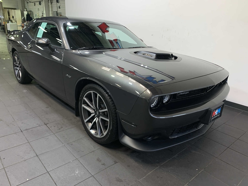 Dash Plaque, MOPAR Shaker Hood, Black Fuel Filler Door, Gloss Black I/P Cluster Trim Rings, Challenger Script Grille Badge, MOPAR Shaker Intake, Underhood Shaker Decal, White Face Instrument Cluster, Black Grille w/Bezel, POWER SUNROOF, (STD), (STD). Dodge R/T with Granite Pearlcoat exterior and Black interior features a 8 Cylinder Engine with 375 HP at 5150 RPM*.