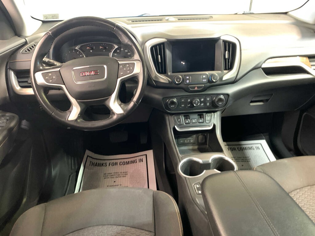 (252 hp [188.0 kW] @ 5500 rpm, 260 lb-ft of torque [353.0 N-m] @ 2500 - 4500 rpm), includes (BTV) Remote Start, (CJ2) dual-zone automatic climate control, (KA1) driver and front passenger heated seats, (AG1) 8-way power driver seat adjuster, (AL9) driver power lumbar control and (V2P) roof-mounted luggage rack side rails, includes (IOU) 8 diagonal GMC Infotainment System with navigation, multi-touch display and AM/FM/SiriusXM stereo, 4.2 enhanced display with audio, phone and navigation capability, (UVB) HD Rear Vision Camera, (U2K) SiriusXM Radio, (MCZ) 2 USB ports, located within the center console, (MCR) 2 USB data ports with SD Card Reader, located within front center storage bin and (KI6) 110-volt power outlet, includes (UKC) Lane Change Alert with Side Blind Zone Alert, (UFG) Rear Cross Traffic Alert, (UD7) Rear Park Assist and (HS1) Safety Alert Seat Also includes (DWK) outside heated power-adjustable manual-folding body-color mirrors with LED turn signal indicators.), WHEELS, 18 X 7 (45.7 CM X 17.8 CM) SILVER PAINTED ALUMINUM, includes multi-touch display, AM/FM/SiriusXM stereo, Bluetooth® streaming audio for music and most phones, Android Auto® and Apple CarPlay® capability for compatible phones, advanced voice recognition, in-vehicle apps, personalized profiles for infotainment and vehicle settings, TRANSMISSION, 9-SPEED AUTOMATIC 9T50, ELECTRONICALLY-CONTROLLED WITH OVERDRIVE. GMC SLE with Graphite Gray Metallic exterior and Jet Black interior features a 4 Cylinder Engine with 252 HP at 5500 RPM*. Serviced here, Local Trade-In