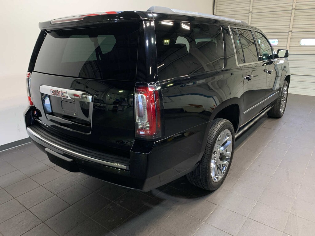 includes (PCJ) Open Road Package contents: additional 9 months of SiriusXM Radio and NavTraffic service, (CF5) power sunroof, (U42) rear seat entertainment system, (DNU) third row DVD screen, (UTT) Enhanced Security Package contents: (UTR) self-powered horn, (UTV) interior movement and (UTU) vehicle inclination sensors, (BRS) power-retractable assist steps, (Y66) Adaptive Cruise Control - Advanced with (UGN) Forward Automatic Braking, (JB1) 4-wheel antilock, 4-wheel disc brakes, (SII) 22 bright aluminum wheels with Midnight Silver premium paint and (SFE) wheel locks, LPO, with remote control, overhead display, Wi-Fi wireless projection capability, four 2-channel wireless digital headphones, auxiliary HDMI/MHL audio/video input and 2 USB ports, WHEELS, 22 X 9 (55.9 CM X 22.9 CM) 6-SPOKE CHROME MULTI-FEATURED DESIGN, body security content, includes (UTR) self-powered horn, (UTV) interior movement and (UTU) vehicle inclination sensors, door and liftgate lock shields and glass break sensors in rear quarter glass and liftgate window, removes sunglass holder and conversation mirror from overhead console, 1st and 2nd rows, bright finish badge (dealer-installed), AM/FM/SiriusXM stereo with seek-and-scan and digital clock, includes Bluetooth® streaming audio for music and select phones; voice-activated technology for radio and phone; and Shop. Featuring Apple CarPlay® and Android Auto® capability for compatible phone; 5 USB ports and 1 auxiliary jack (STD), with Active Fuel Management, Direct Injection and Variable Valve Timing, includes aluminum block construction (420 hp [313 kW] @ 5600 rpm, 460 lb-ft of torque [624 N-m] @ 4100 rpm) (STD), electronically controlled with overdrive, tow/haul mode and tap up/tap down shifting (STD). GMC Denali with Onyx Black exterior and Jet Black interior features a 8 Cylinder Engine with 420 HP at 5600 RPM*.