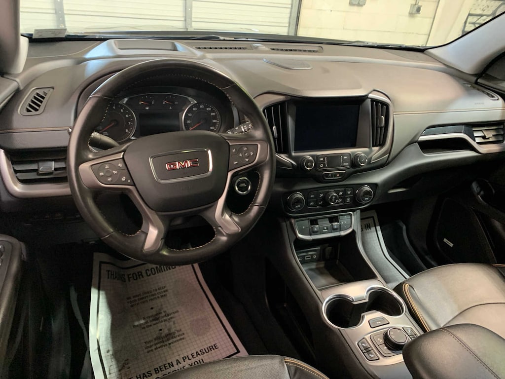 see onstar.com for information. Access the entire suite of OnStar Safety & Security Services and Connected Services. For retail customers, this includes the OnStar Guardian app, connectivity for available In-Vehicle Apps, In-Vehicle Wi-Fi Hotspot data and Remote Access through the myGMC mobile app. Fleet customers will receive OnStar Vehicle Insights instead of Remote Access. Eligible vehicles receive 3-years of the OnStar and Connected Services Premium Plan, including the Connected Vehicle Plan and the OnStar Safety & Security Plan. Connected Vehicle Plan includes connectivity for available in-vehicle apps, Remote Access Plan (excluding Fleet vehicles, which will receive OnStar Vehicle Insights) and In-Vehicle Wi-Fi Hotspot data. OnStar Safety & Security Plan includes access to the OnStar, SUNROOF, SKYSCAPE POWER WITH POWER SUNSCREEN, includes (IOU) 8 diagonal GMC Infotainment System with navigation, multi-touch display and AM/FM/SiriusXM stereo and (UQA) Bose premium 7-speaker system, Includes (UV2) HD Surround Vision, (UV7) Head-Up Display and (UD5) Front and Rear Park Assist.), includes (UKC) Lane Change Alert with Side Blind Zone Alert, (UFG) Rear Cross Traffic Alert and, (UD7) Rear Park Assist; in addition to standard (PDO) GMC Pro Safety (Also includes (KSG) Adaptive Cruise Control and (HS1) Safety Alert Seat. Vehicles built on or after July 4, 2022, will be forced to include (00S) Not Equipped with Lane Change Alert with Side Blind Zone Alert and Rear Cross Traffic Alert, which removes Lane Change Alert with Side Blind Zone Alert and Rear Cross Traffic Alert. Vehicles equipped with (00S) Not Equipped with Lane Change Alert with Side Blind Zone Alert and Rear Cross Traffic Alert will be eligible for later dealer retrofit to enable functionality. See dealer for details or the window label for the features on a specific vehicle.), includes multi-touch display, AM/FM/SiriusXM stereo, Bluetooth® streaming audio for music and most phones, Android Auto® and Apple CarPlay® capability for compatible phones, advanced voice recognition, in-vehicle apps, personalized profiles for infotainment and vehicle settings, (170 hp [127.0 kW] @ 5600 rpm, 203 lb-ft of torque [275.0 N-m] @ 2000 - 4000 rpm) (STD), (STD). GMC AT4 with Ebony Twilight Metallic exterior and Jet Black interior features a 4 Cylinder Engine with 170 HP at 5600 RPM*.