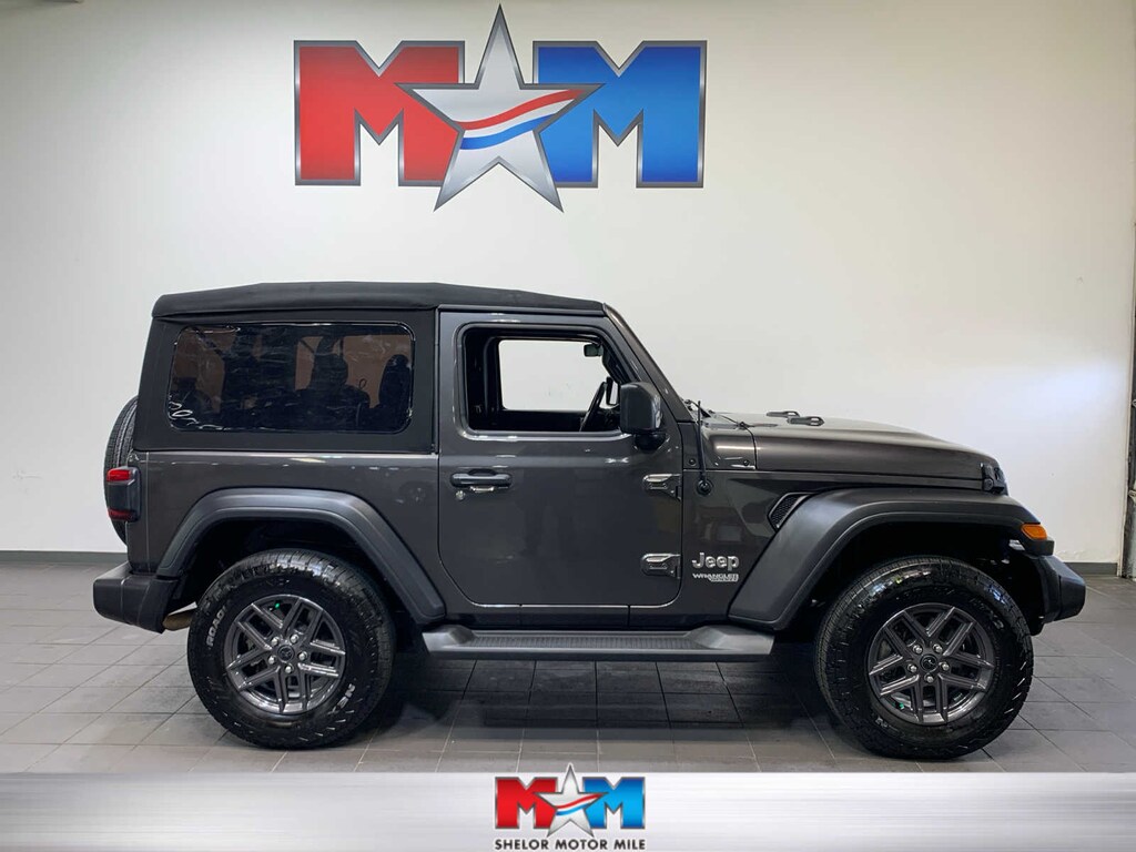 Engine: 3.6L V6 24V VVT eTorque UPG I, Transmission: 8-Speed Automatic (850RE), Speed Sensitive Power Locks, Automatic Headlamps, Leather Wrapped Steering Wheel, Front 1-Touch Down Power Windows, Sport S, Power Heated Mirrors, Security Alarm, Remote Keyless Entry, Sun Visors w/Illuminated Vanity Mirrors, Anti-Lock 4-Wheel Disc Brakes, Google Android Auto®, Cluster 7.0 TFT Color Display, SiriusXM Satellite Radio, SiriusXM Radio Service, USB Host Flip, Integrated Center Stack Radio, 7.0 Touchscreen Display, Air Conditioning w/Auto Temp Control, Radio: Uconnect 4 w/7 Display, Apple CarPlay®, Air Filtering, GPS Antenna Input, ParkSense Rear Park Assist System, Blind Spot & Cross Path Detection, LED Taillamps, Injection Molded Black Rear Bumper, Class II Receiver Hitch, 700 Amp Maintenance Free Battery, 7 & 4 Pin Wiring Harness, 240 Amp Alternator, Auxiliary Switches, ENGINE: 3.6L V6 24V VVT ETORQUE UPG I, PREMIUM BLACK SUNRIDER SOFT TOP. Jeep Sport S with Granite Crystal Met. Clear Coat exterior and Black interior features a V6 Cylinder Engine with 285 HP at 6400 RPM*.