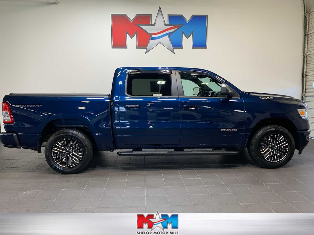 Active Noise Control System, Heavy Duty Engine Cooling, GVWR: 7,100 lbs, Dual Rear Exhaust w/Bright Tips, Hemi Badge, 23 Gallon Fuel Tank, 18 Aluminum Spare Wheel, Radio: Uconnect 4 w/8.4 Display, SiriusXM Satellite Radio, Rear Window Defroster, Rear View Auto Dim Mirror, Power Adjustable Pedals, Rear Power Sliding Window, Rear Dome w/On/Off Switch Lamp, Glove Box Lamp, Power 4-Way Driver Lumbar Adjust, Power 8-Way Driver Seat, Universal Garage Door Opener, Cluster 3.5 TFT Color Display, Foam Bottle Insert (Door Trim Panel), 2nd Row In Floor Storage Bins, Class IV Receiver Hitch, Black Premium Power Mirrors, Sun Visors w/Illuminated Vanity Mirrors, Big Horn IP Badge, Google Android Auto®, SiriusXM Traffic Plus, SiriusXM Satellite Radio, Disassociated Touchscreen Display, HD Radio, For Details, Visit DriveUconnect.com, Integrated Center Stack Radio, 1-Yr SiriusXM Guardian Trial, Air Conditioning ATC w/Dual Zone Control, GPS Navigation, SiriusXM Travel Link, 4G LTE Wi-Fi Hot Spot, No Satellite Coverage w/HI/AK/PR/VI/GU, 8.4 Touchscreen Display, Apple CarPlay®, ANTI-SPIN DIFFERENTIAL REAR AXLE, PARKSENSE FRONT/REAR PARK ASSIST W/STOP, REMOTE START SYSTEM, TRANSMISSION: 8-SPEED AUTOMATIC (8HP75). Ram Big Horn with Patriot Blue Pearlcoat exterior and Black interior features a 8 Cylinder Engine with 305 HP at 6400 RPM*.
