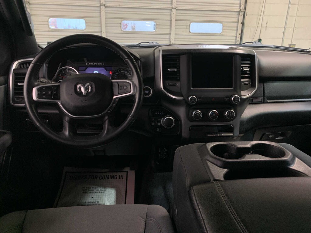 Google Android Auto®, SiriusXM Radio Service, Bluetooth® Handsfree Phone & Audio, USB Host Flip, Rear Window Defroster, For Details, Visit DriveUconnect.com, Integrated Center Stack Radio, Rear View Auto Dim Mirror, Power Adjustable Pedals, Rear Power Sliding Window, Rear Dome w/On/Off Switch Lamp, Connectivity - US/Canada, Glove Box Lamp, 4G LTE Wi-Fi Hot Spot, Exterior Mirrors w/Heating Element, Power 8-Way Driver Seat, Auto Dim Exterior Driver Mirror, Radio: Uconnect 5 W w/8.4 Display, 8.4 Touchscreen Display, Class IV Receiver Hitch, Black Premium Power Mirrors, Apple CarPlay®, Big Horn IP Badge, SiriusXM Satellite Radio, Exterior Mirrors w/Supplemental Signals, Exterior Mirrors Courtesy Lamps, Universal Garage Door Opener, Cluster 3.5 TFT Color Display, Power-Folding Mirrors, 2nd Row, (STD), (STD). Ram Big Horn with Bright White Clearcoat exterior and Diesel Gray/Black interior features a V6 Cylinder Engine with 305 HP at 6400 RPM*. Local Trade-In